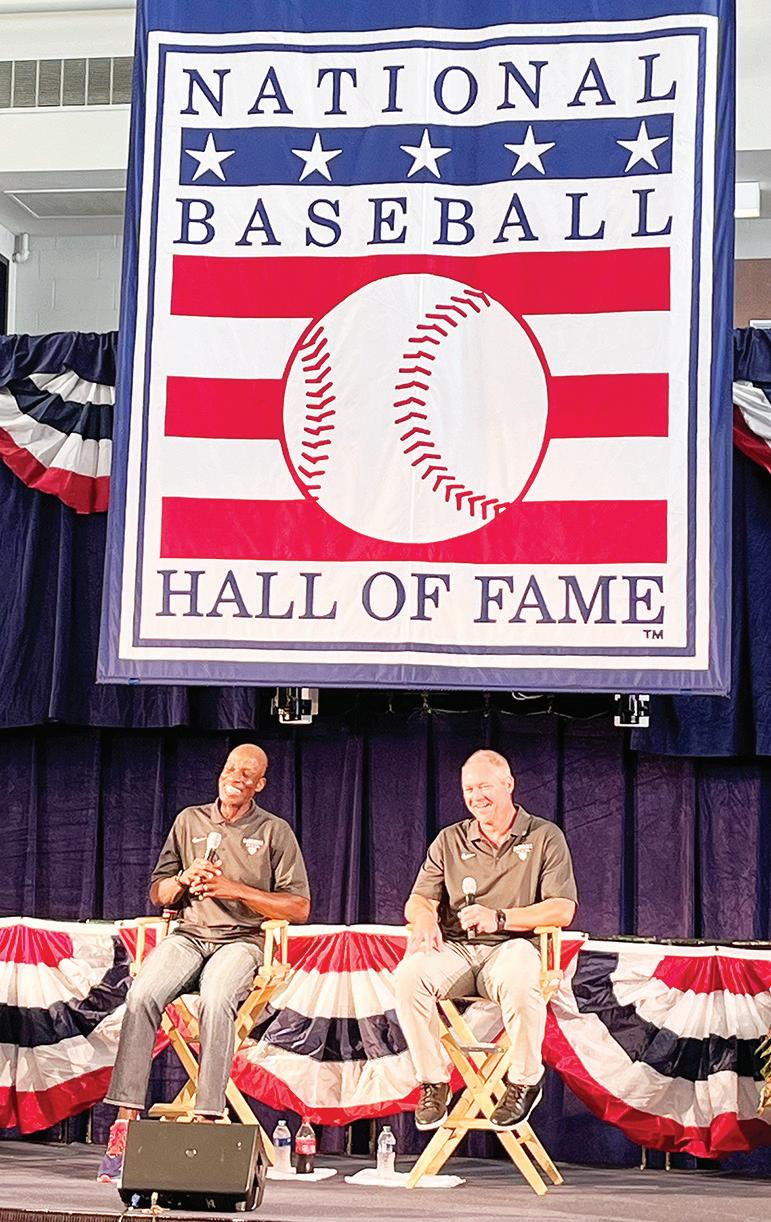 the stage was McGriff, who made sure to shake the hands of nearly all of the 50 Hall of Famers who welcomed him.