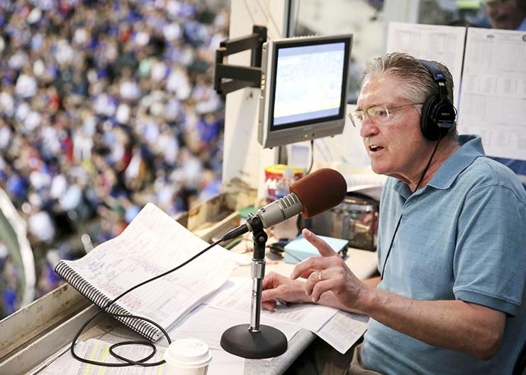 Chicago Cubs radio broadcaster Pat Hughes works a game against the Milwaukee Brewers on Sept. 15, 2016, at Wrigley Field in Chicago. CHRIS SWEDA/CHICAGO TRIBUNE/TNS