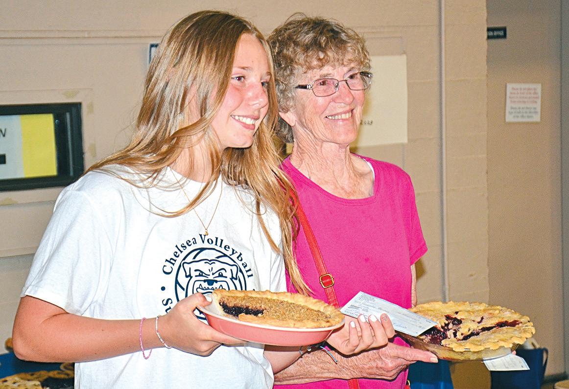 Joyce Lee of LaHarpe, right, was once again crowned the winner of the Allen County Fair Baked Pie Contest Thursday. Taking second place was Gianna Barney, 13, Lee’s granddaughter, in her first ever baked pie contest. REGISTER/RICHARD LUKEN