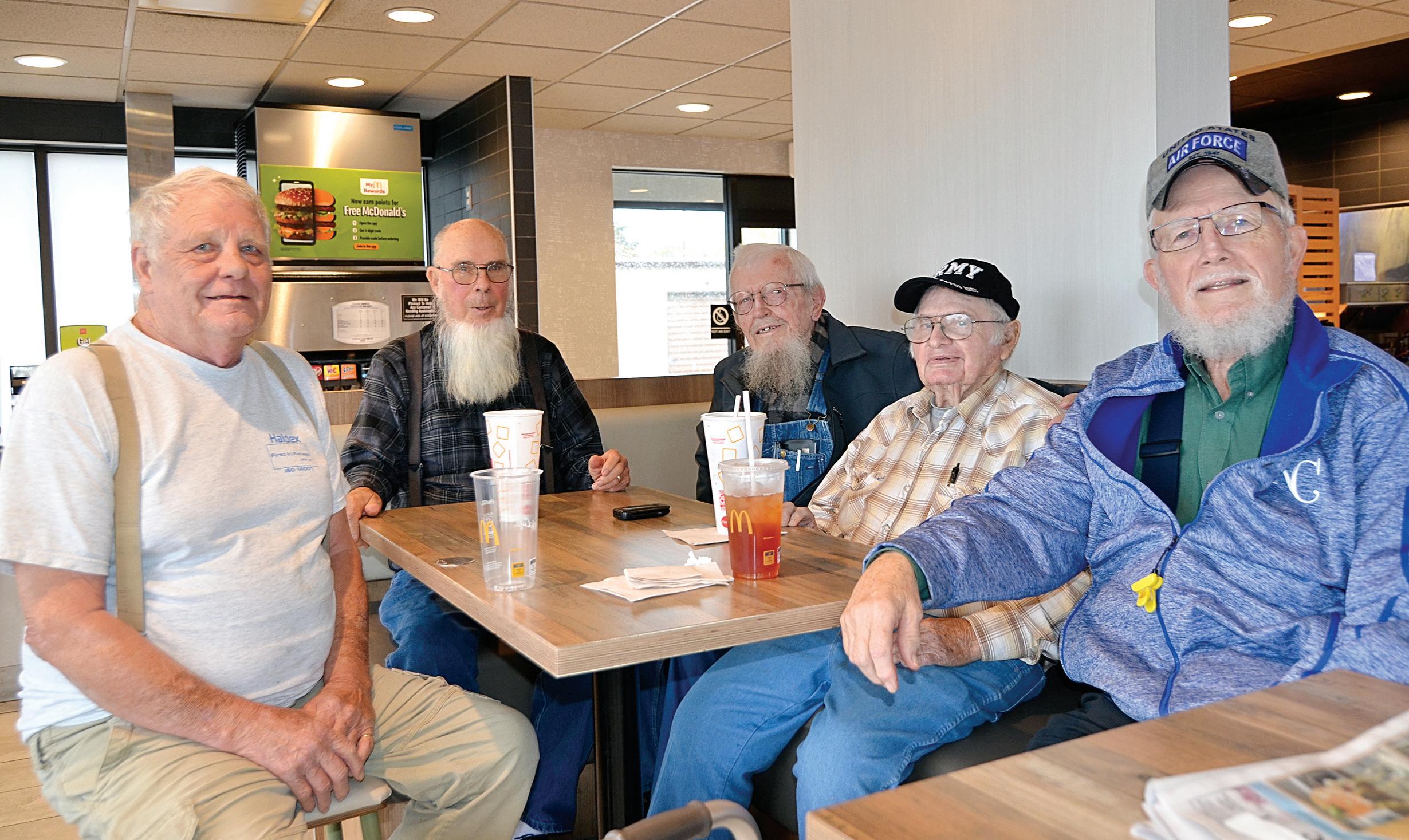 From left, Bob Jewell, Merrill Hodgden, David Ensminger, John Hillbrant and Steve Traw conduct “office hours” at McDonald’s most afternoons from 3 to 5. REGISTER/SUSAN LYNN