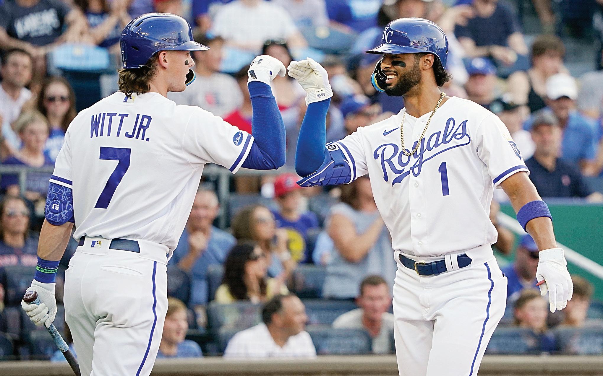 The Kansas City Royals are banking on youngsters like Bobby Witt Jr., left, and M.J. Melendez in 2023. GETTY IMAGES/ED ZURGA/TNS