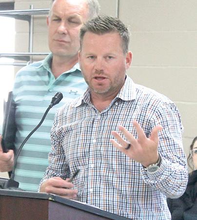 Farrant, CEO of Mammoth Construction, shares with the council what the ballfield study entails. REGISTER/SARAH HANEY