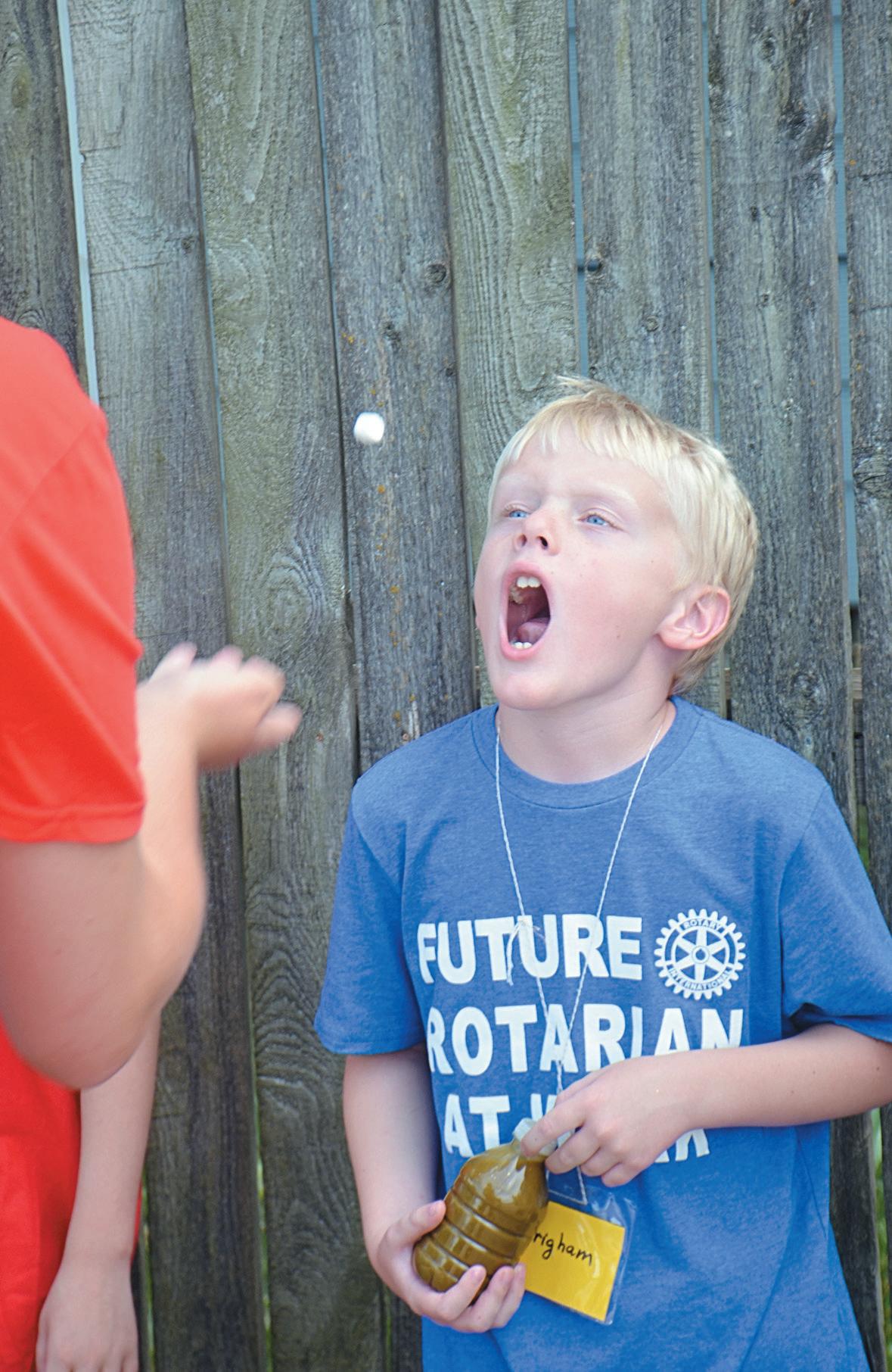 Above, Paul Miller uses a homemade launch to fire off marshmallows as youngsters attempt to catch the tasty treats. Far right, Brigham Smith prefers the handtossed method. At right, a group of preschoolers use a parachute to launch a beachball during an outdoor game.