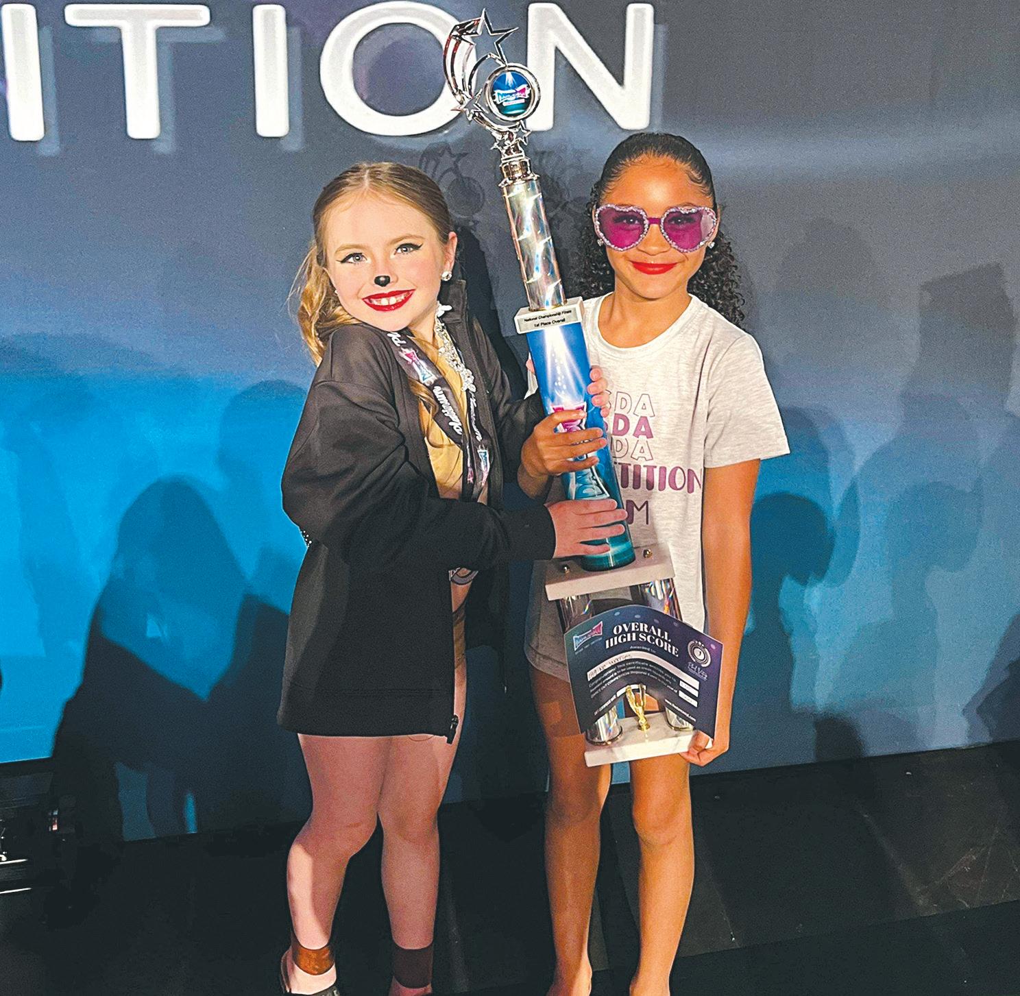 Sailor Crowell, left, and Bryleigh Hinkle earned a national champion award for their musical theater piece at a dance competition in Branson, Mo. COURTESY PHOTO