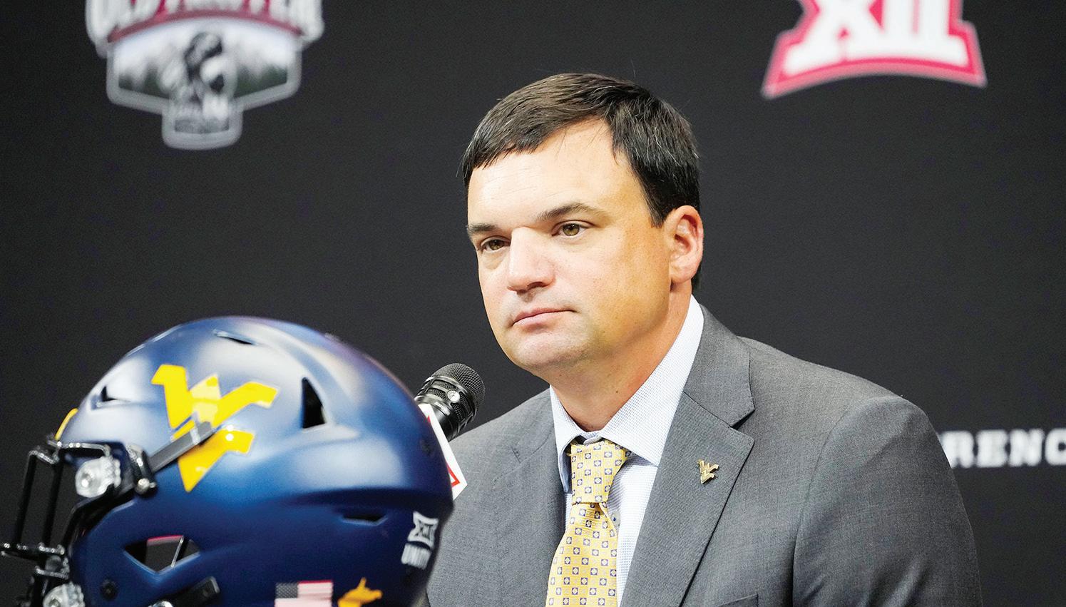 WVU football head coach Neal Brown at Big 12 football media day. TNS Health is key for WVU’s Daniels