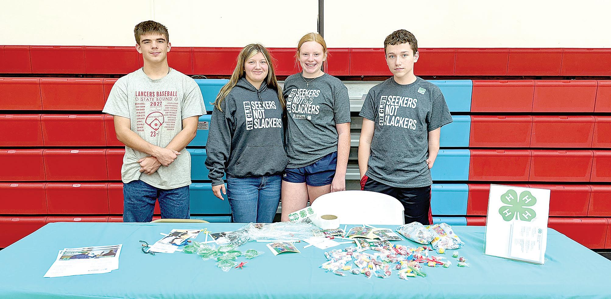 Crest Students back to school on Aug. 17. From left, Zander Dickerson, McK enna Powell, Lizzie Ellington, Blaine King. PHOTO COURTESY OF BLAINE KING/SEEKERS-NOT-SLACKERS 4-H CLUB