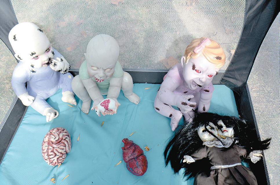 It’s the work of Dustin and Sarah LaCrone, Halloween aficionados who offer their yard in a ritual sacrifice to the whims of all things creepy, crawly and bloodcurdling.