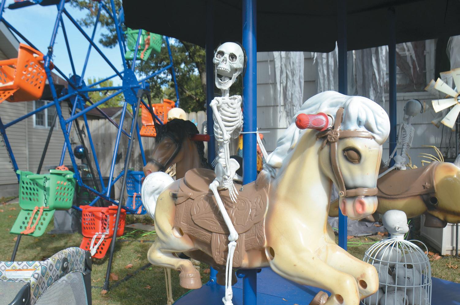 By “fun stuff,” she’s referring to a creepy carnival where a giant Ferris wheel delights the dead. Skeletons take their turn on a carousel. A wanna-be rodeo star rides a