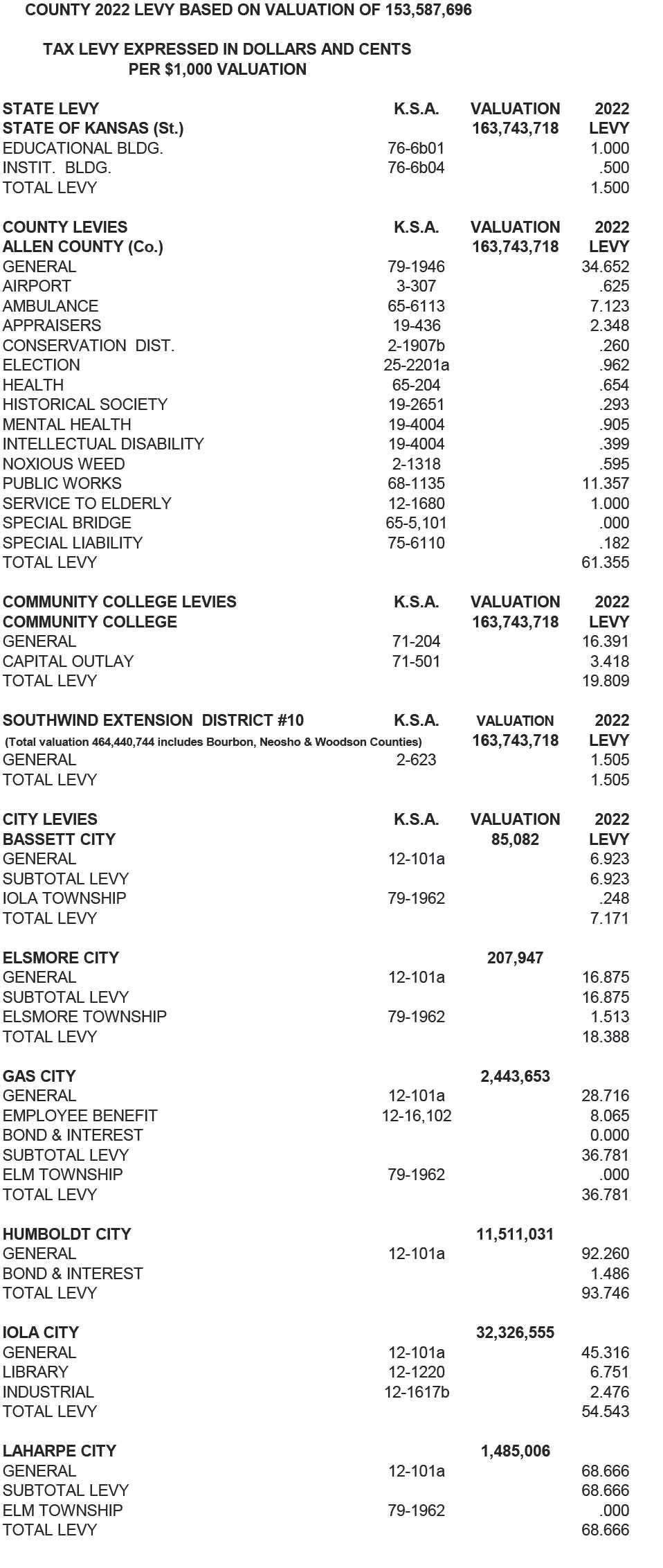 A2 Wednesday, November 30, 2022 iolaregister.com The Iola Register 302 S. Washington, PO Box 767 Iola, KS 66749 (620) 365-2111 Periodicals postage paid at Iola, Kansas. Member Associated Press. The Associated Press is entitled exclusively to use for publication all the local news printed in this newspaper as well as all AP news dispatches All prices include 8.75% sales taxes. Postal regulations require subscriptions to be paid in advance. USPS 268-460 ISSN Print: 2833-9908 ISSN Website: 2833-9916 Postmaster: Send address changes to The Iola Register, P.O. Box 767 , Iola, KS 66749 iolaregister.com Susan Lynn, editor/publisher Tim Stauffer, managing editor Published Tuesday, Wednesday, Thursday, Friday and Saturday, except New Year’s Day, Memorial Day, Independence Day, Labor Day, Thanksgiving and Christmas. Subscription Rates Mail in Kansas Mail out of State Internet Only $162.74 $174.75 $149.15 $92.76 $94.05 $82.87 $53.51 $55.60 $46.93 $21.75 $22.20 $16.86 One Year 6 Months 3 Months 1 Month Regionalist Art Auction Saturday, Dec. 10 SoulisAuctions.com | 816.697.3830 Thomas Hart Benton (1889-1975) Jesse James (1936) Paintings, Prints, Watercolors Live Auction with Telephone, Internet and Absentee Bidding. Shipping Provided. Today Thursday 42 23 Sunrise 7:17 a.m. Sunset 5:02 p.m. 27 51 42 62 Friday Temperature High Monday 55 Low Tuesday night 26 High a year ago 56 Low a year ago 32 Precipitation 24 hours ending 8 a.m. 0 This month to date 4.16 Total year to date 29.66 Deficiency since Jan. 1 7.08