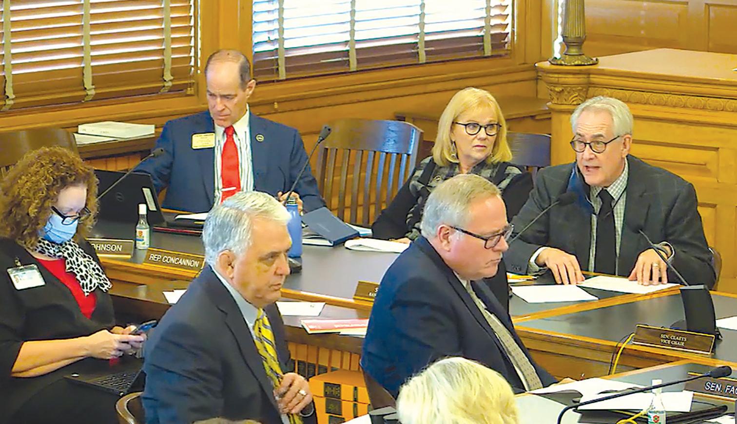 Manhattan Democrat Sen. Tom Hawk, right, said he would resign from the Senate one day into the 2023 legislative session. Democrats will appoint his replacement. (KANSAS REFLECTOR SCREEN CAPTURE FROM KANSAS LEGISLATIVE YOUTUBE CHANNEL)