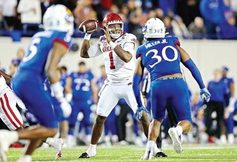 wide receiver Matt Landers for a 59-yard touchdown pass on busted coverage by KU’s defensive back. That put Arkansas up 10-7 with 6:05 left in the first.
