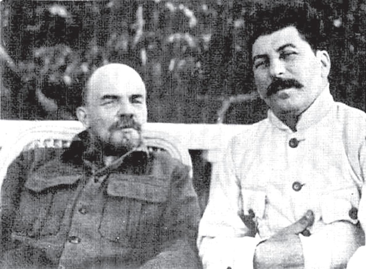 Soviet founder Vladimir Lenin, left, and Soviet leader Josef Stalin in 1922 just outside Moscow, Russia. PICRYL