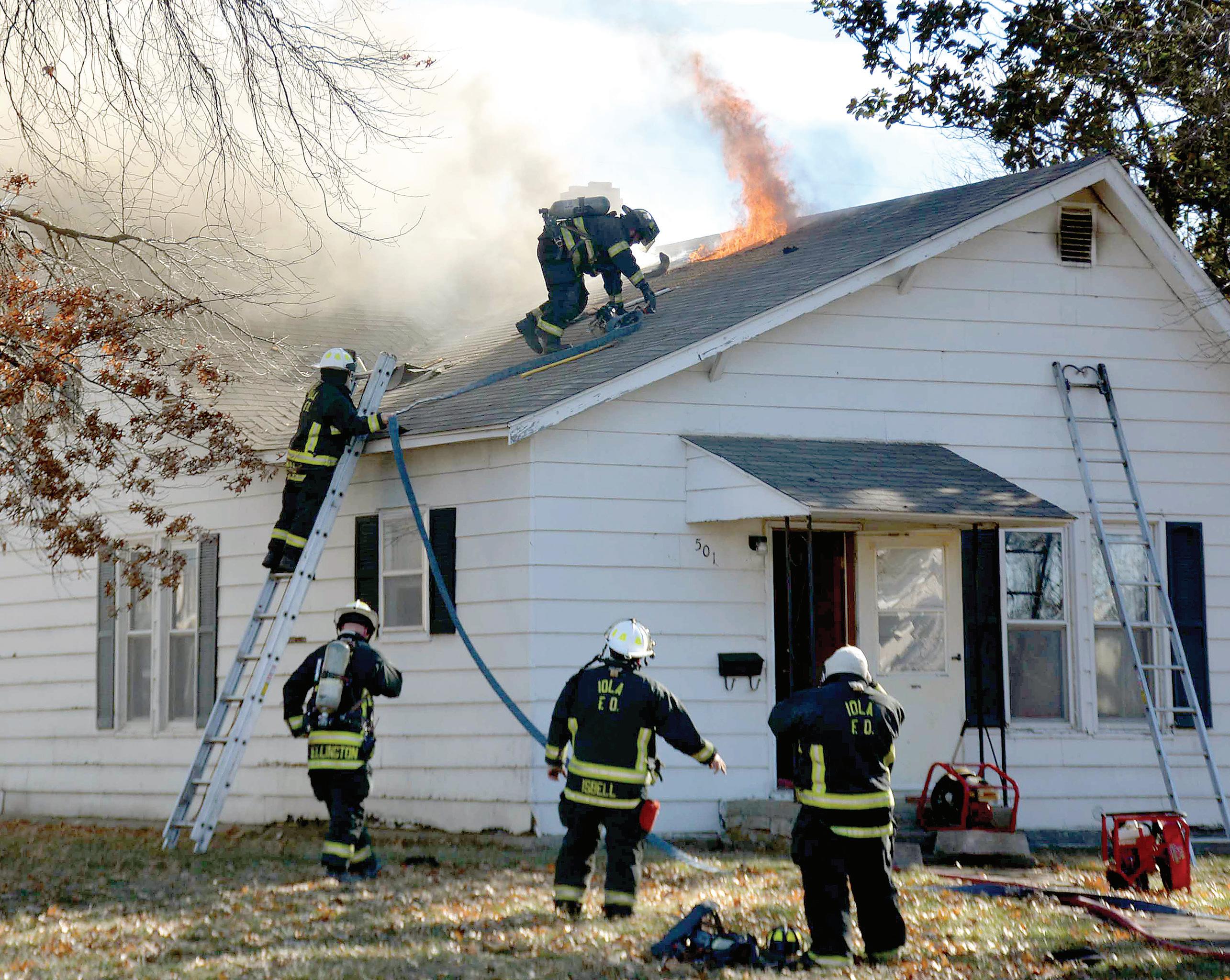 The house at 501 S. Walnut St. was heavily damaged by the fire. Crews were able to contain the blaze to the attic space and had it under control in about 30 minutes, Iola Fire Chief Corey Isbell said.