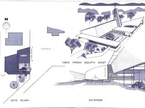 The original architects’ proposals from June of 1973 show that initial plans were for a dramatically different look from the chapel we all now know, with an angular and ultra-modern church featuring skylights and an outdoor sanctuary initially proposed.