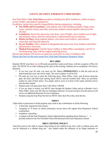 This handbook serves as an official source of school policies and requirements Itisessentialthatparents read and become familiar with the material contained within this booklet to support their sons’ efforts at Iona Prep in order to experience a very successfulhighschoolcareer Theschoolabidesbytheprovisions of the Buckley Amendment Non-custodial parents will be given access to academic records and informationregardingtheirchildrenunlessthereisacourtordertothecontrary.