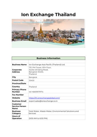 Business Name Ion Exchange Asia Pacific (Thailand) Ltd.