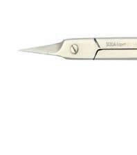 Ergonomic cuticle scissors with extra slim cutting surface and tower tip for particularly precise work. Ideal for difficult work on the cuticle or skin.