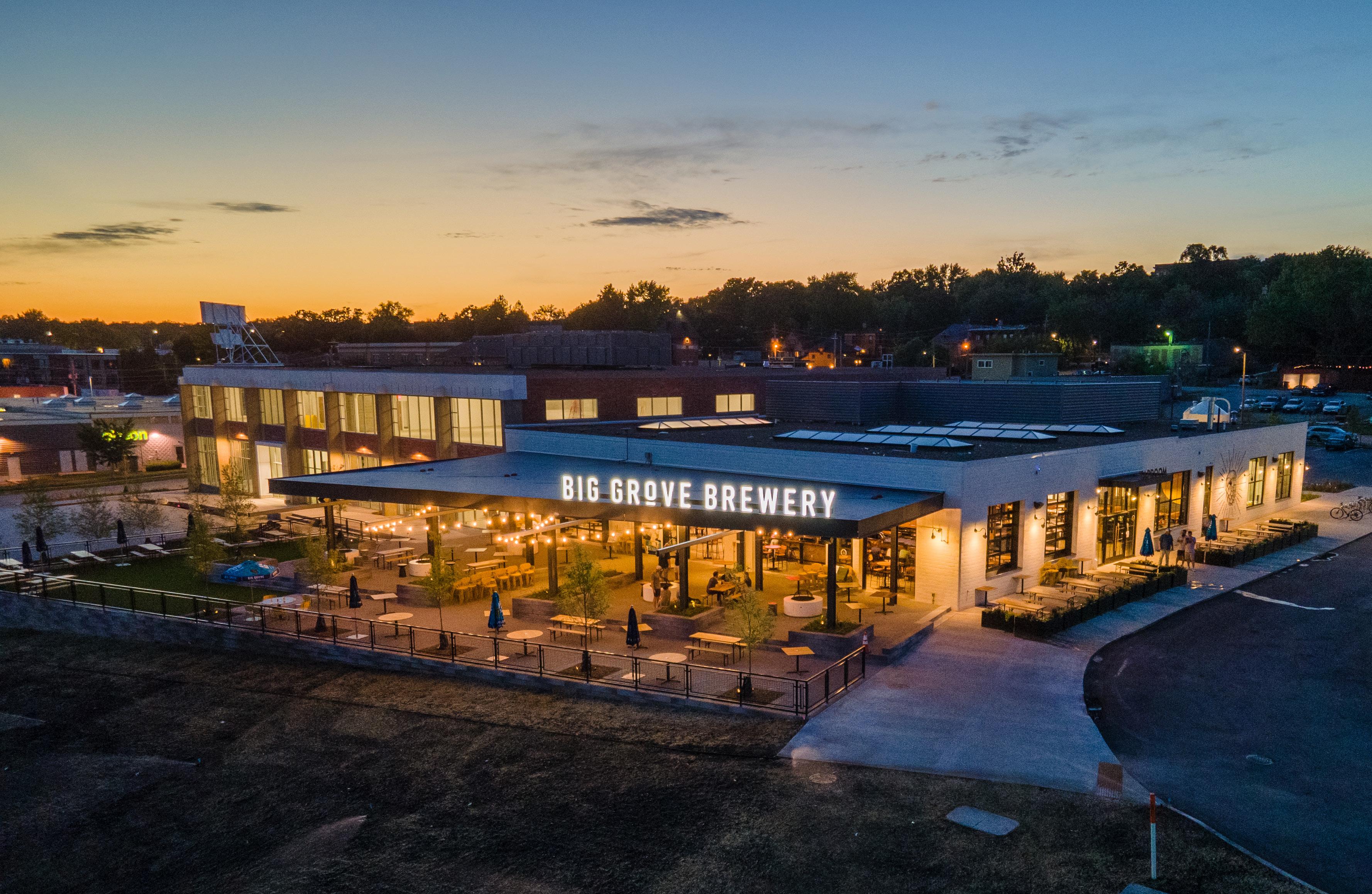 Big Grove Brewery reimagined the old Crescent Chevrolet building, turning it into a vibrant taproom with indoor and outdoor space. The decor pays homage to the building’s original use, with a neon Crescent sign adorning the walls.