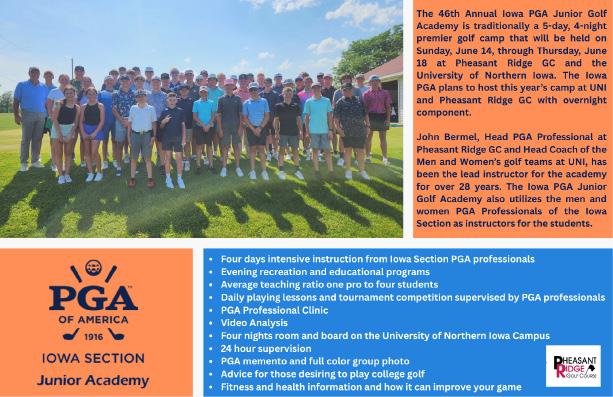 The Iowa PGA will start its 2025 Monday Professional events on April 4th. Be sure to follow our websites – iowapga.com and iowapgajuniorgolf.com for results of all the tournaments we administer. Or follow along on our social media – Facebook, Twitter/X and Instagram. The Iowa PGA will administer over 190 events in 2026 for our PGA Professionals, Junior Golfers and General Public.