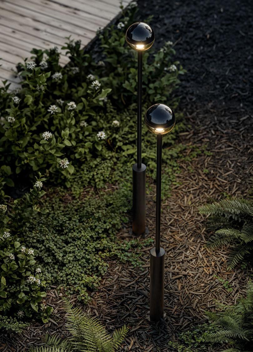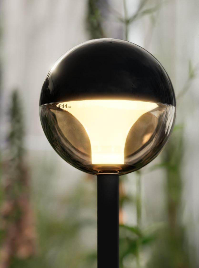 Eine wahrhaft runde Sache ist bal.4. Ihr konsequenter Kugelkorpus, der wahlweise auf Erdspieß oder Poller ruht, erinnert nicht von ungefähr an Himmelskörper wie Sonne und Mond. Mit ihrer Hülle aus rauchfarbenem Glas und hochglanzpulverbeschichtetem Aluminium schaff t bal.4 Lichtinseln, wo immer man sie sich wünscht.