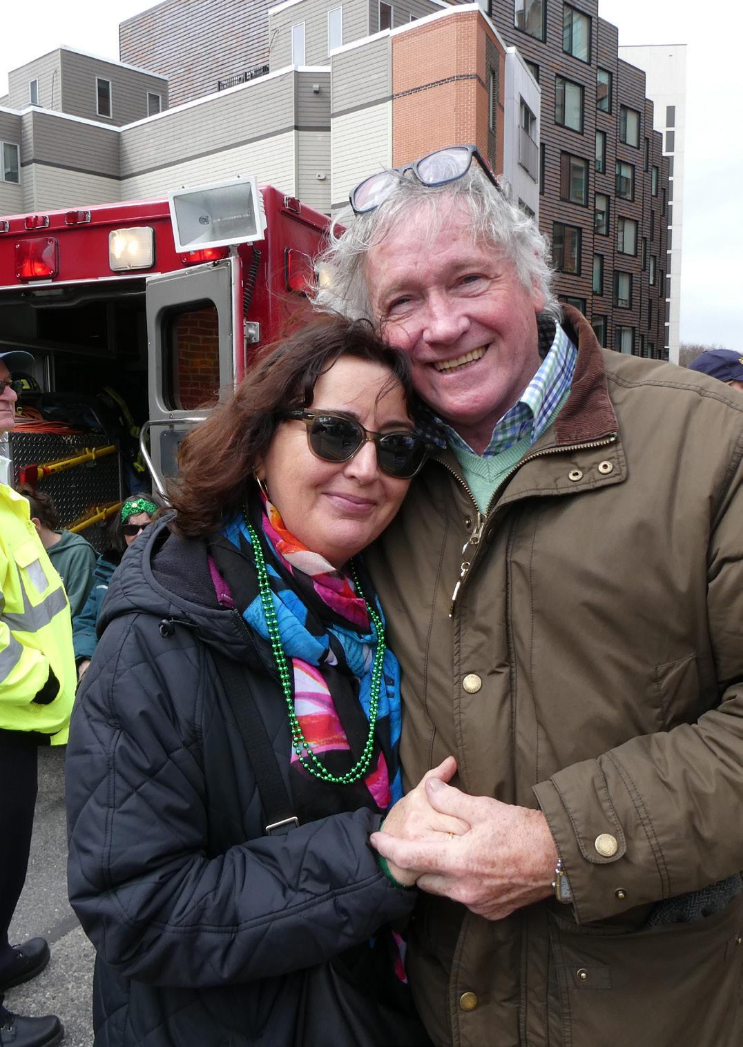 estimated that up to a million people lined the streets. Throngs of green-clad revellers filled America’s most Irish big city, all boasting of Irish heritage and all claiming to be Irish on that date. The parade went on and on, a total of three and a half miles. Crazy Parade but so enjoyable. Great fun and banter. There was some thirst at the end and a number of us enjoyed a street party sitting on the flower pots!!!