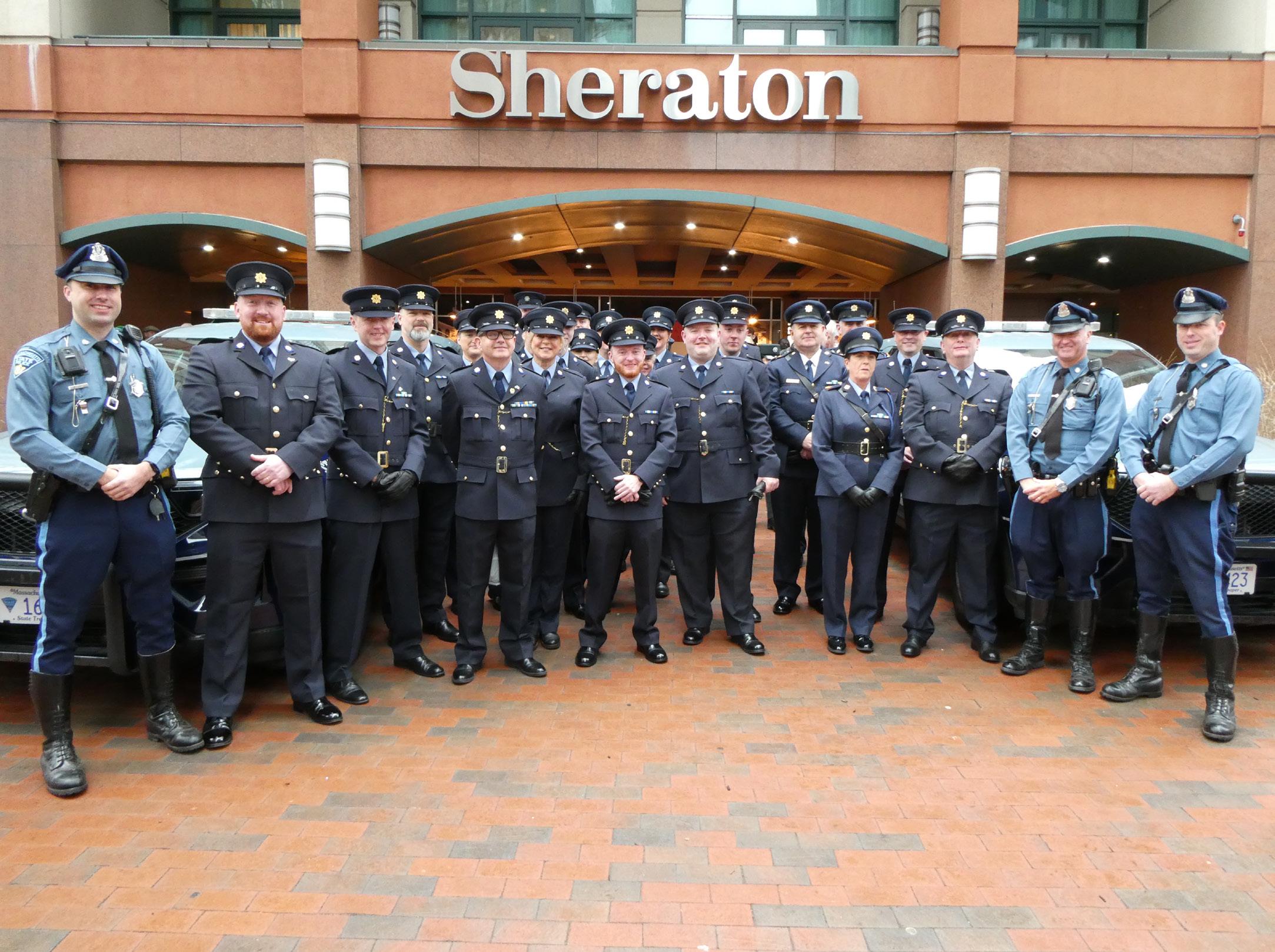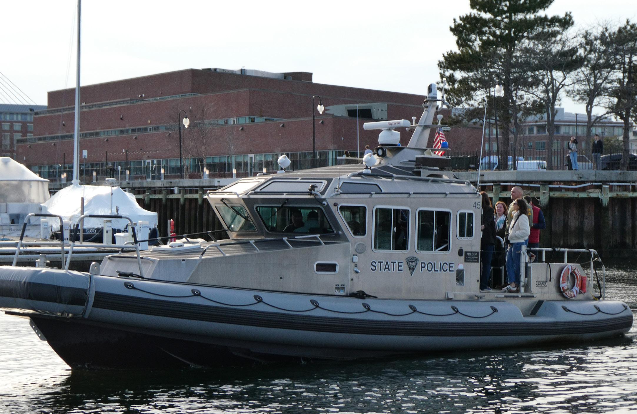 On Saturday, a group tour of Boston Harbour was arranged for us by the Boston State Police Marine Unit. A wonderful trip in the Boats. Thanks to all who made this possible, especially to Lt. Colonel Marc Lavoie and retired Lt. Colonel Jimmy Concannon who accompanied us on the occasion. Harvey was a big hit with the ladies!!!