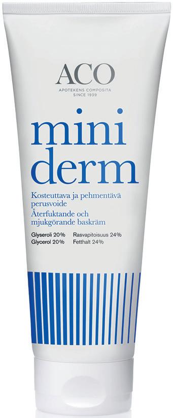 Hellävarainen ja kevyt Miniderm kosteuttaa kuivaa ja herkkää ihoa. 100 g, 210 g ja 500 g.