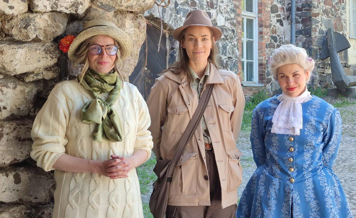 Susisaaren salaisuus -seikkailukierroksella tavattavia hahmoja. Kuvassa: Minna Rouni, Catrinen Kursberg ja Petra Rauhala.