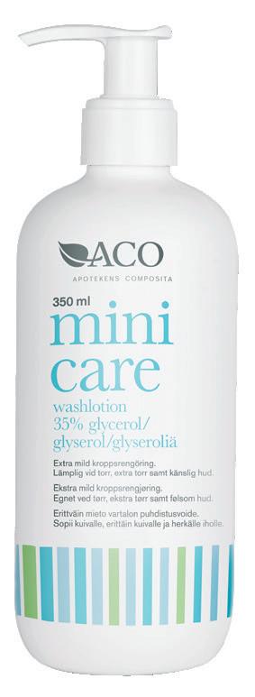 Muista myös Minicare Washlotion hellävaraiseen ihon puhdistukseen. Kosteuttaa ja pehmentää ihoa. Ei sisällä hajusteita eikä säilöntäaineita. Sopii puhdistamaan aurinkovoiteet pois iholta.