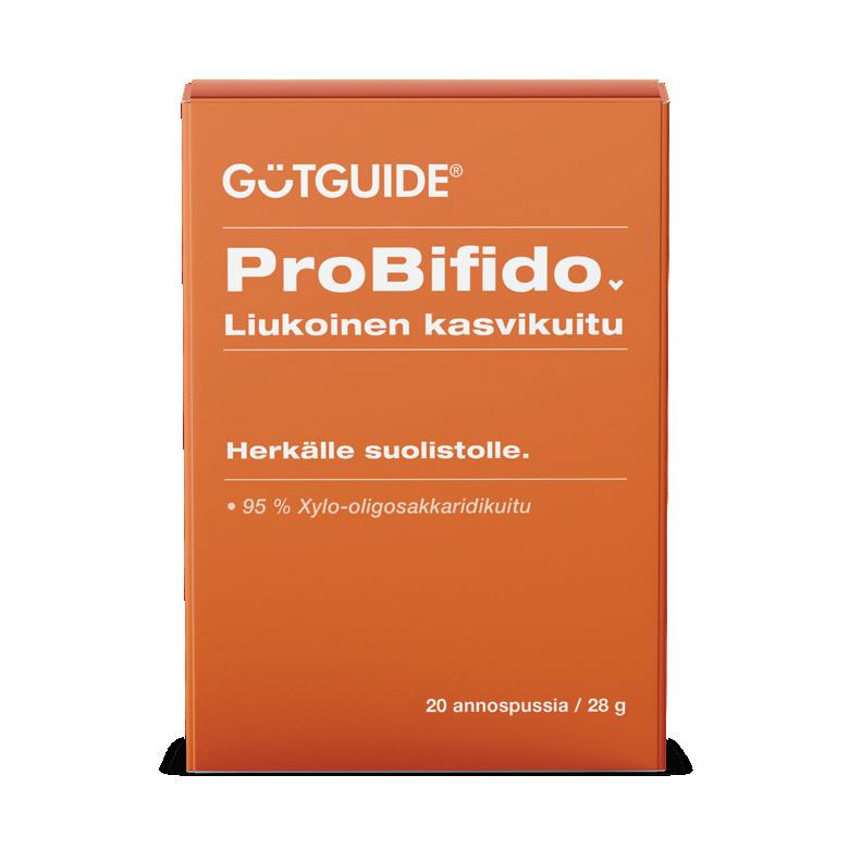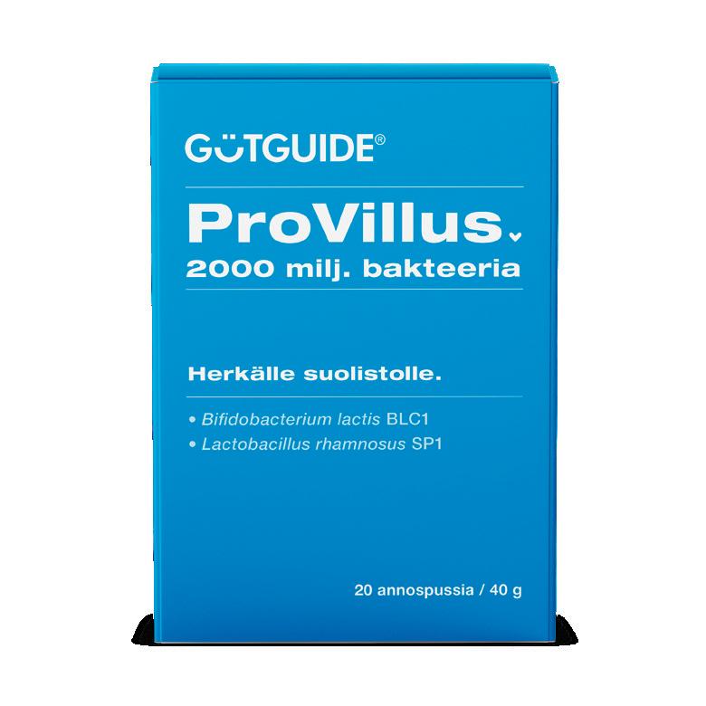 GutGuide® ProVillus-bakteerilisä sisältää bifidobakteereita ja laktobasilleja jauheena, aktiivisessa muodossa. Sekoita maitoon, jogurttiin tai soseeseen yhdessä liukoisen GutGuide®ProBifido-kuitulisän kanssa. ProBifido-kuitu ruokkii bifidobakteereita, sopii herkälle suolistolle ja samalla aktivoi lapsen suolen toimintaa. Kummatkin ravintolisät sopivat myös vanhemmille.