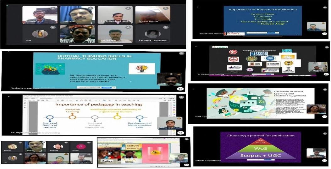 Online Faculty Development program is about -“Advances in Teaching and Research Pedagogies in Pharmaceutical Sciences.” This online program lasted for 5 days that is from 13th February 2023 to 17th February 2023 The program was supported by IPASF-HNK which is divided into 3 sessions per day. The speakers of the sessions were Sri T.Jayapal Reddy, Dr G Sumalatha, Dr D Lakshmi, Dr Alluri Ramesh, Dr.Nilimanka Das, Dr.P.Rajasekhar, Prof M. Sunitha Reddy, Dr P Ranadheer Chowdary, Dr D Praveen, Dr Riyaz Ali, Dr. S.Sriram, Dr.C.Kumarappan, Dr.Noohu Abdullah Khan, Dr. M.Vijey Aanandhi, Dr. V.S.V Rao Vadlamudi.