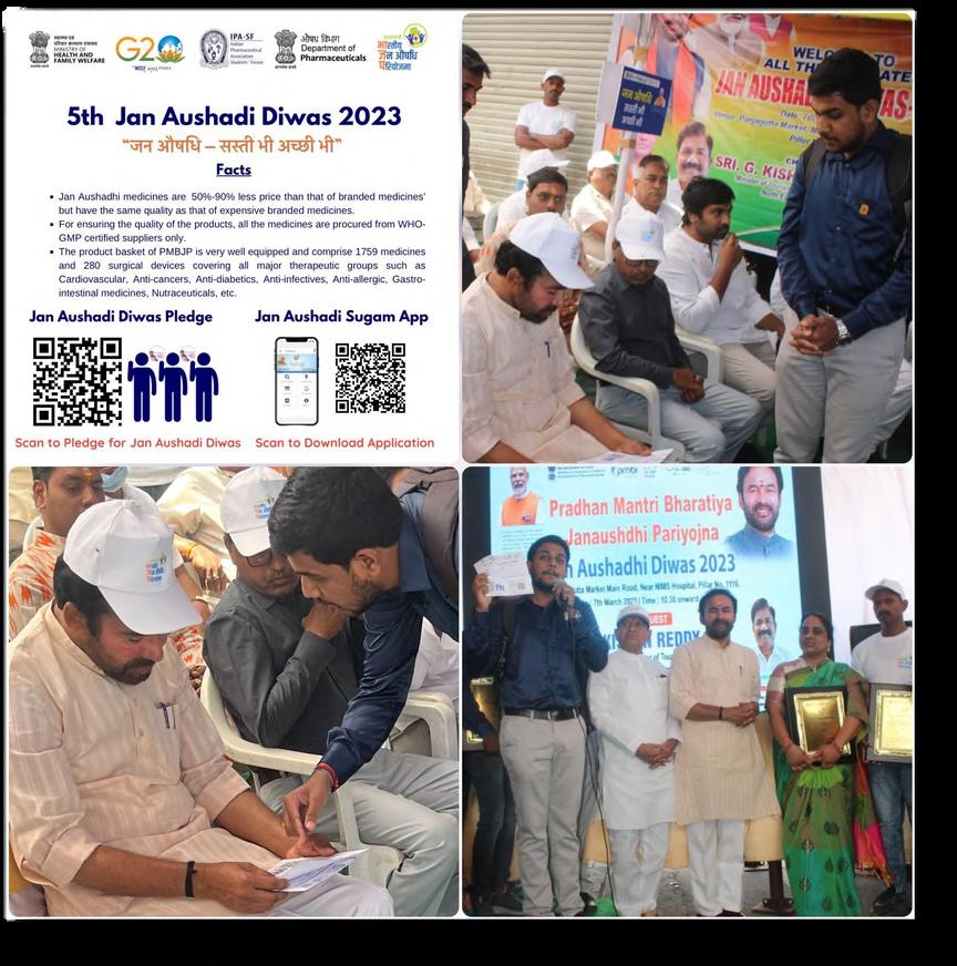 IPA-SF Team launched the awareness posters about the Jan Aushadhi through the hands of the Union Minister of Tourism & Development of North Eastern Region Shri. G Kishan Reddy Ji at Hyderabad on account of Jan Aushadhi Diwas 2023