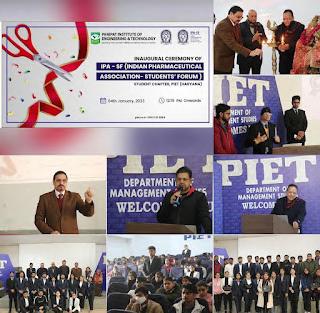 On 4th January 2023, 12:30 PM Panipat Institute of Engineering and Technology Organized an Inauguration ceremony of New 'IPA-SF PIET STUDENT CHAPTER' under the guidance of respected dignitaries’ viz. Dr. Shakti Kumar Sir (Director, PIET), Sh. Hari Om Tayal Sir (Chairman, PIET), Sh Rakesh Tayal sir (Vice-Chairman PIET), Sh. Shubham Tayal Sir (Member BOG PIET), Sh Deepak Prabhakar Bhagwat Sir (Principal, Department of Pharmacy, PIET).