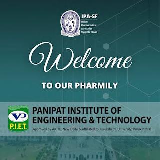 Panipat Insititute of Engineering and Technology, Department of Pharmacy has initiated IPA-SF PIET Student Chapter at Panipat, Haryana.
