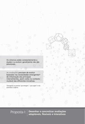 As avaliações precisam de evoluir baseadas nas necessidades emergentes* de informação dos principais intervenientes, assim como no contexto mutável das diferentes iniciativas. *Emergentes no sentindo “que emergem”, “que surgem” e não associadas à urgência.