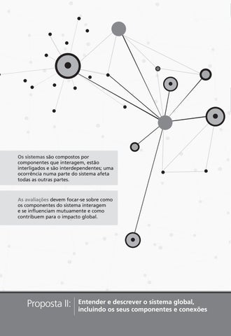 As avaliações devem focar-se sobre como os componentes do sistema interagem e se influenciam mutuamente e como contribuem para o impacto global.