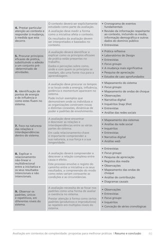 A avaliação necessita de se focar nos padrões como uma forma de avaliar a coerência no sistema. Prestar atenção à forma como certos padrões (produtivos e improdutivos) se repetem em múltiplos níveis do sistema.
