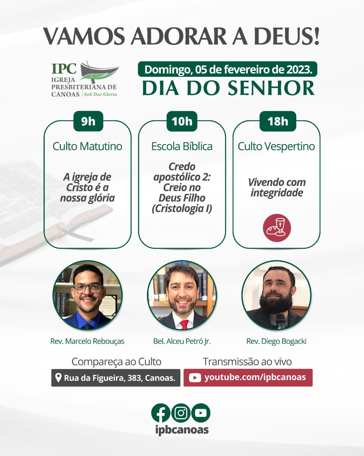 CULTO SOLENE AO SENHOR DOMINGO, 04 DE FEVEREIRO DE 2023, 18H.