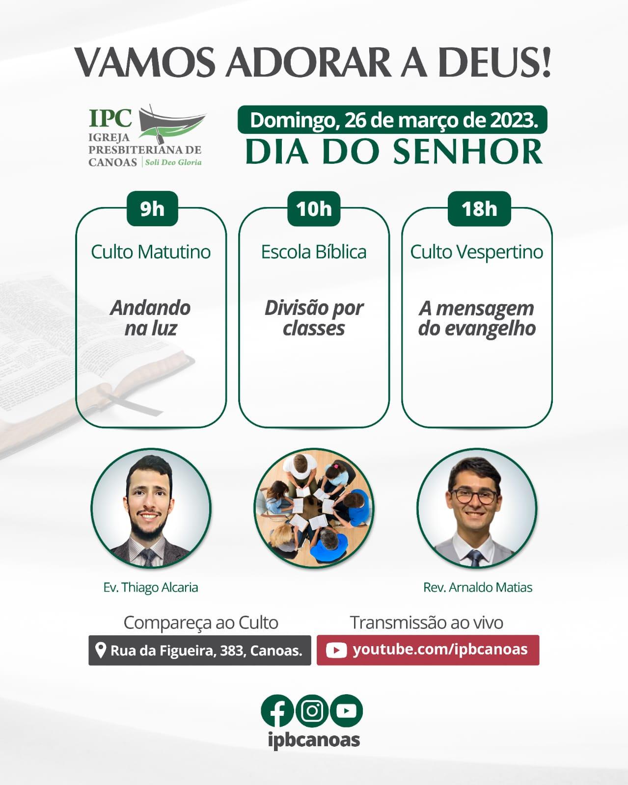CULTO SOLENE AO SENHOR DOMINGO, 26 DE MARÇO DE 2023, 18H.