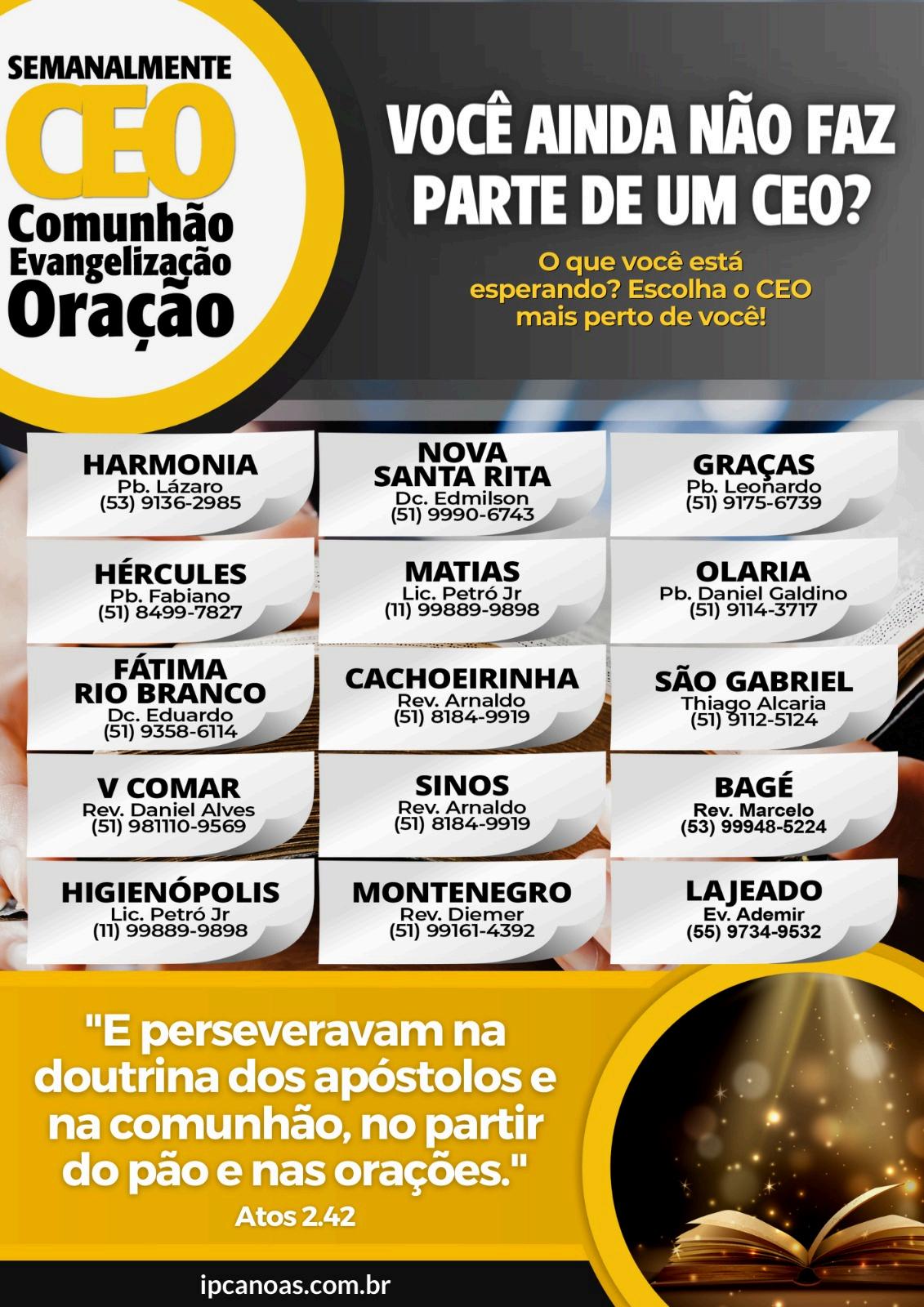 BENTO GONÇALVES GRAVATAÍ SÃO BORJA SAPUCAIA DO SUL SÃO LEOPOLDO ipcanoas.com.br ipcanoas@ipb.org.br (51) 98111-9569 ipbcanoas ipcanoas ipcanoas IPBCANOAS ipbcanoas