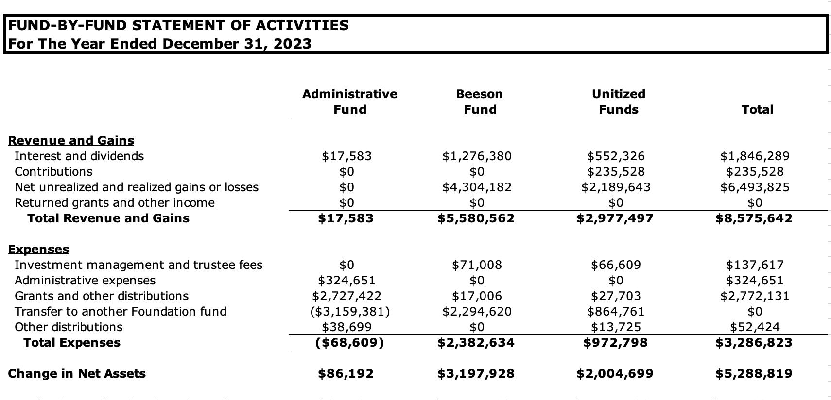 • $2.73 remains in the Fund to generate income for future support of those ministries.