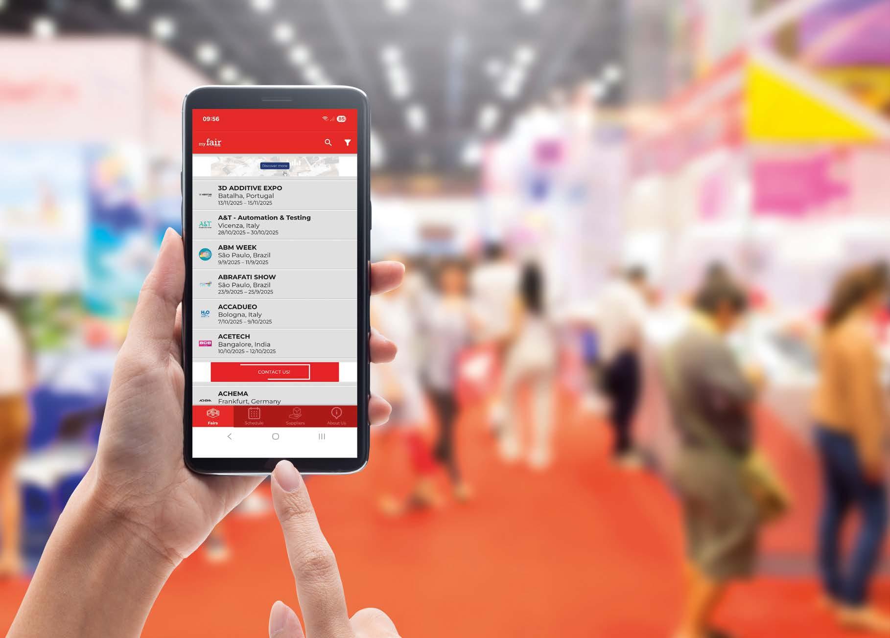 myFAIR is a free web app that can be accessed from both desktop and mobile devices, which allows you to stay up-to-date with the leading events of the surface treatment sector.