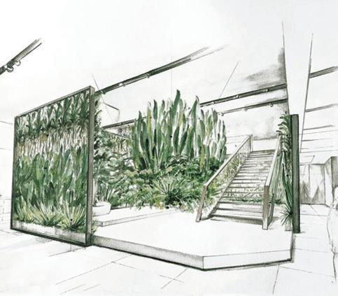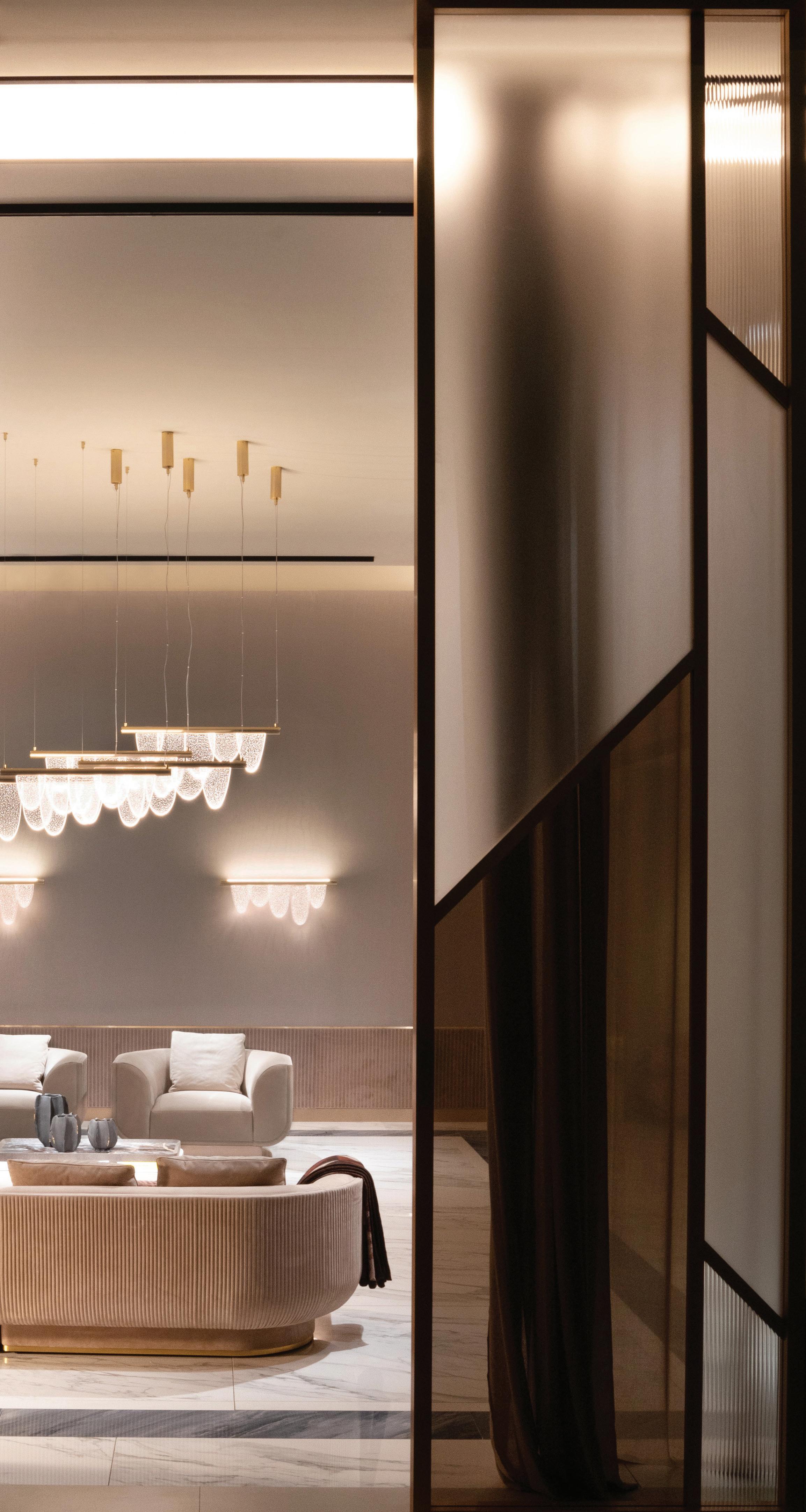 The winter garden marks the beginning and end of the exhibition pathway inside Visionnaire’s pavilion, welcoming and greeting visitors like a warm embra ce. Its semicircular form, in fact, is like a window to the outside world, as interpreted by the sophisti cated gaze of Marco Bonelli and Marijana Radovic, alias m2atelier, the creators of the Caprice collection that was presented for the first time in 2021.