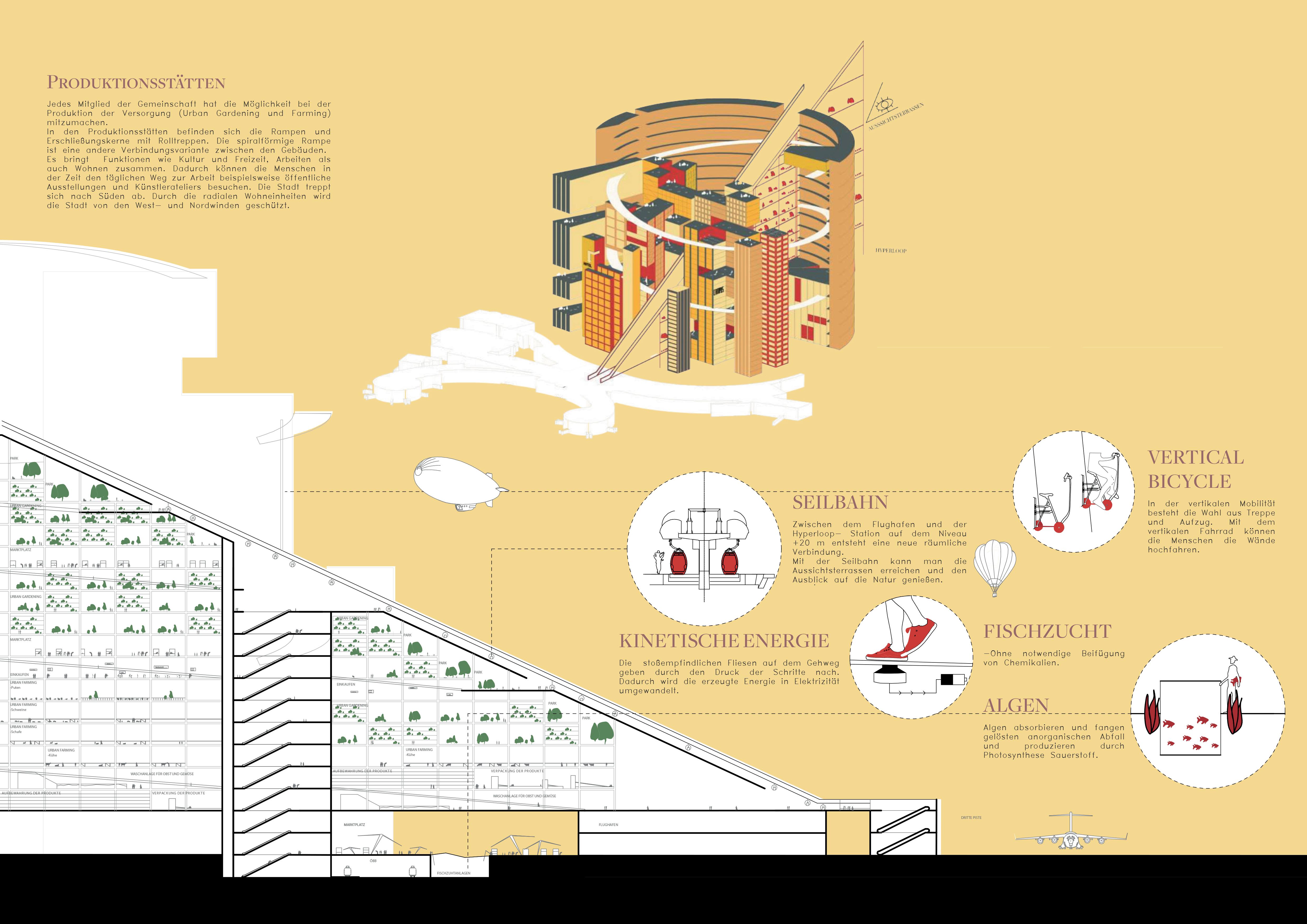Die Stadt ist auf Kunst und Forschung spezialisiert. Aus diesem Grund steht die „Interaktion der Menschen“ im Vordergrund. Die Zwischenräume dienen dem Informationsaustausch. Mit den Zwischenräumen und spannenden Erschließungen schafft die Stadt viele Begegnungsräume.