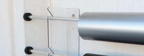 Struttura autoportante con ruote realizzata con telaio in profili di alluminio da cm. 5, supporti laterali e base in pvc spessore mm. 19. Le 12 aste in alluminio sono facilmente amovibili per caricare e scaricare velocemente le bobine. Nostra produzione, altre misure e varianti su richiesta