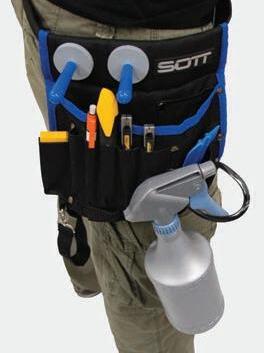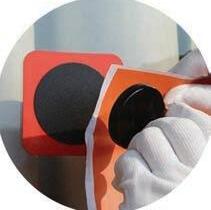 Spugna bianca sottile e ruvida, per la rimozione dei residui più difficili di colla e sporcizia sui vetri.