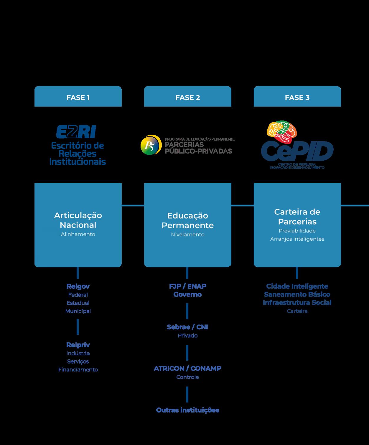 Somos uma instituição comprometida com a gestão e planejamento de boas políticas públicas. Por entender que o caminho mais inteligente para gerir as cidades requer também a participação do setor privado, nos especializamos então na estruturação de Parcerias Público-Privadas. A partir de cooperação técnica, capacitamos os municípios em todas as fases dos projetos, desde a coleta de dados e produção de estudos, passando pela licitação, até a verificação de desempenho durante os anos de concessão.