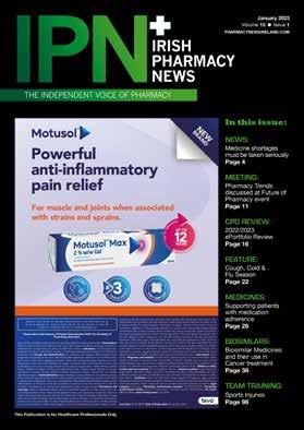 All rights reserved by Irish Pharmacy News. All material published in Irish Pharmacy News is copyright and no part of this magazine may be reproduced, stored in a retrieval system or transmitted in any form without written permission. IPN Communications Ltd. has taken every care in compiling the magazine to ensure that it is correct at the time of going to press, however the publishers assume no responsibility for any effects from omissions or errors.