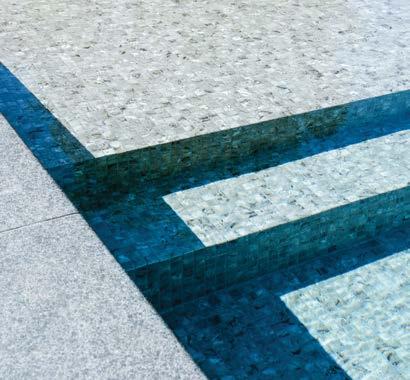 Desuden sikrer mosaikkernes form, at de ligger perfekt, også i poolens hjørner og ved installationer. Det begrænser forbruget af arbejdstimer.