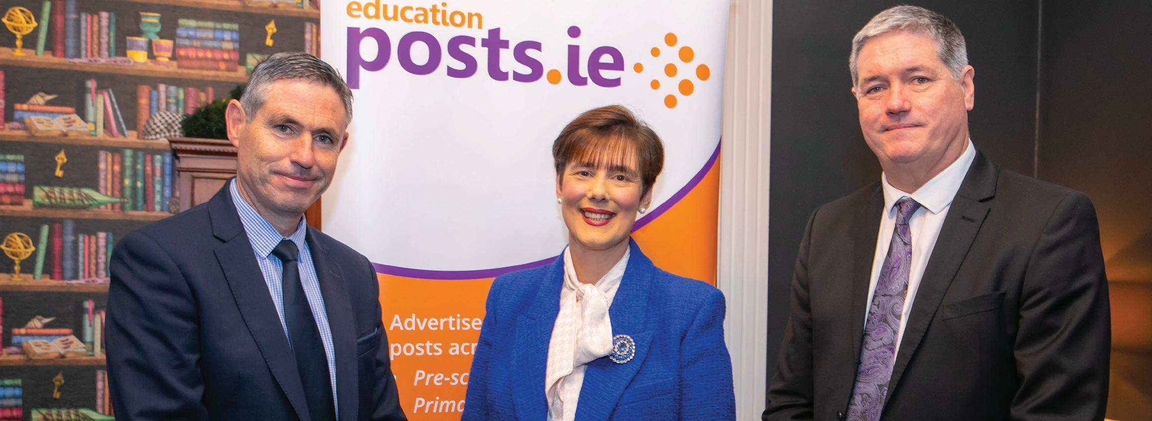 Brian O’Doerty and CEO Páiric Clerkin with Minister Norma Foley at the launch of Education Matters Yearbook 2023